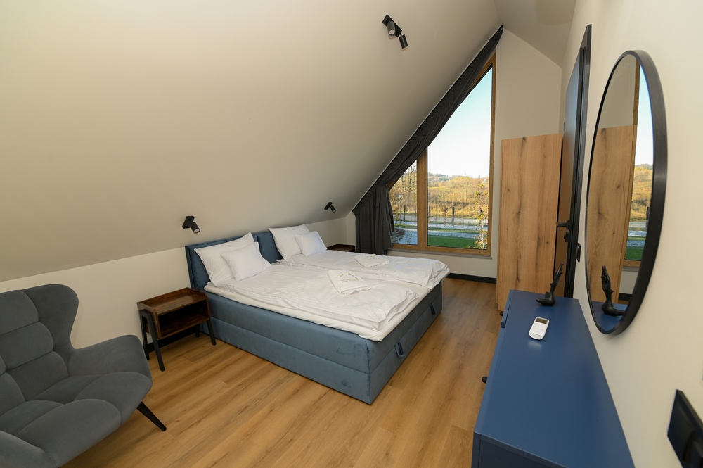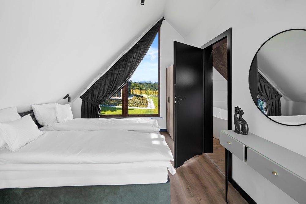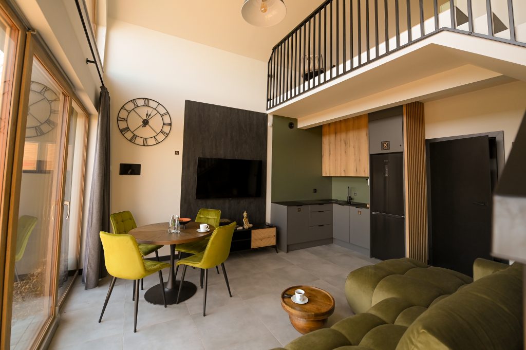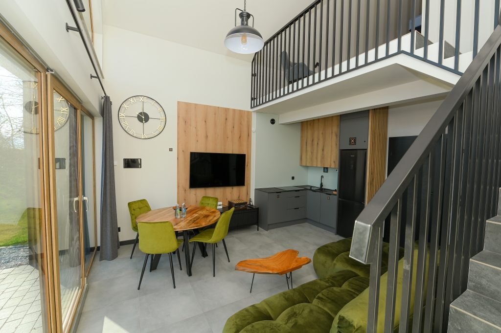 Położone w malowniczej Michałkowej, z widokiem na góry i stawem, zapewniają idealny balans między sielską naturą a nowoczesnym komfortem. W środku znajdziesz wszystko, czego potrzebujesz – od w pełni wyposażonej kuchni, przez wygodne łóżka, aż po miejsca, gdzie możesz rozsiąść się z książką lub laptopem (choć radzimy, żeby laptop został w torbie)